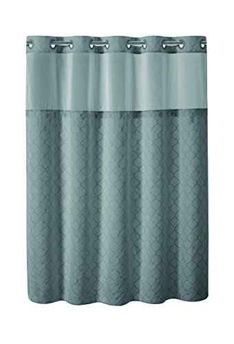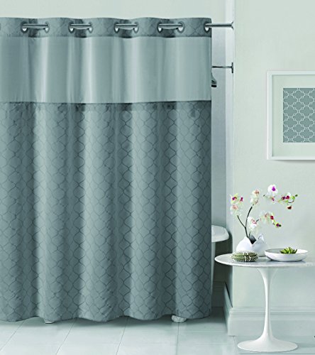 Hookless Mosaic Embroidery Shower Curtain with Peva Liner-Dark Grey