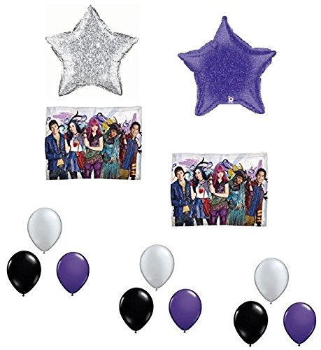 -. Feature : You will receive 13 Latex and Mylar Balloons: / Characters are from the Descendants #2. / (2) 24" Disney Descendants #2 Mylar Balloons. / (1) 18" Silver Shimmery Star and (1) 18" Purple Shimmery Star Mylar Balloons. / (9) 11" Latex Balloons...(3) Silver, (3) Black and (3) Dark Purple.