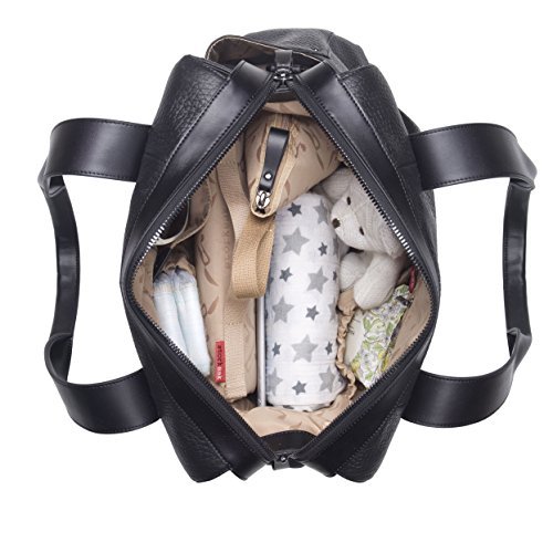 Studio : Storksak Publisher : Storksak Binding : Baby Product Product Description Modern styling meets minimal excellence in the Storksak Kym Convertible Diaper Bag. This beautiful, premium leather bag has great storage capacity with multiple internal pockets, one front slip pocket, and two side pockets for bottles. This effortlessly contemporary design comes with a zipped insulated bottle holder and a luxury machine-washable padded changing mat. We think the Kym would be an excellent gift for the discerning mommy in your life. Features: Includes zipped insulated bottle holder with grab handle and stroller attachment - keeps liquid warm up to 4 hours Includes luxury machine-washable padded changing mat Made from premium durable grained pebble leather Deep slip front pocket Detachable long shoulder strap with patented integrated stroller straps Two side drop-in pockets, large enough for bottles 7 internal pockets Signature Storksak wipe-clean lining throughout Dimensions: 16.5"W x 6"D x 12"H 0