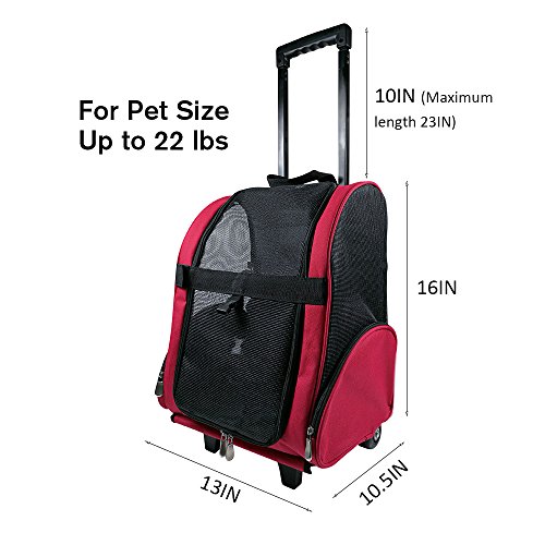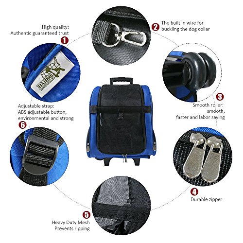 -. Title : HARBO Pet Travel Carrier Rolling Backpack for Dogs Cats Small Animals Airline Travel Tote (Red, Blue)