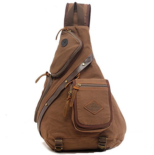 Bonamana Men Canvas Leather Shoulder Military Messenger Haversack Sport Gym Hiking Bag (Khaki)