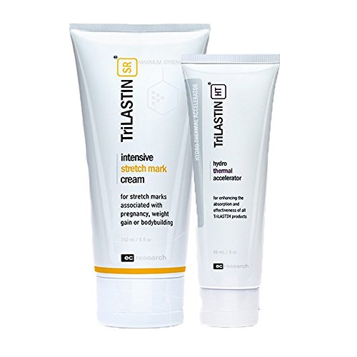 TriLASTIN-SR Maximum Strength Stretch Mark Cream 5.5oz + TriLASTIN-HT Hydro-Thermal Accelerator 3oz - This bundle works as a powerful combination in stretch mark removal. The Hydro-Thermal Accelerator is a pre-delivery system that speeds up the transfer and absorption of active-ingredient formulas for stretch mark treatment, stretch mark prevention and other body-care products.