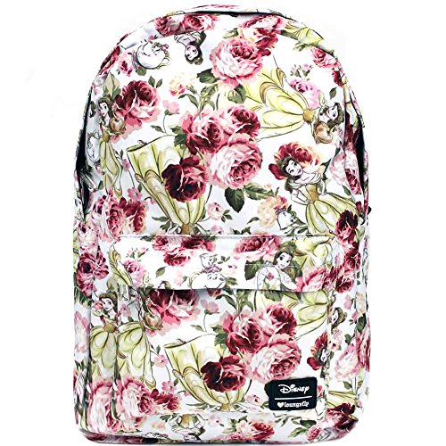 Take a look at your fave Disney characters like you've never seen them before in a new collection of super cute AOP backpacks from Loungefly. This fun Belle Floral festival backpack from features a white colored Nylon base with beautiful all-over Belle floral and leaf graphic print, front zippered pocket, dual reinforced padded shoulder straps, fully lined interior with laptop pocket, and top zip closure.Feature