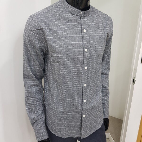 2018년 가을 신상 남성 플란넬 얇은 스트라이프 스탠카라셔츠(기본핏) 입니다. 두께감이 있는 플란넬 소재를 사용하여 초겨울까지 입기 좋으며, 은은한 스트라이프로 포인트를 준 디자인 입니다.