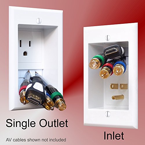 Single Outlet In-Wall Cable Management System for Wall Mounted Flat Screen LED, LCD, and Plasma Televisions. This kit includes a single Power Outlet for mounting one (1) TV.