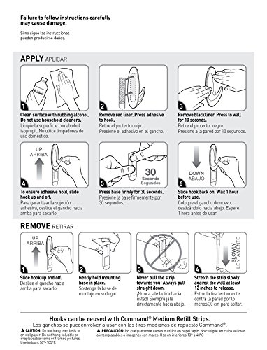 Studio : 3M Publisher : 3M Binding : Tools Home Improvement Product Description Command hooks are available in a wide range of designs to match your individual style and decor. They also come in a variety of sizes and hold a surprising amount of weight - up to seven and a half pounds! forget about nails, screws and tacks, Command hooks are fast and easy to hang! using the revolutionary Command adhesive, stick to many surfaces, including paint, wood, tile and more. Yet, they also come off leaving no holes, marks, sticky residue or stains. Rehanging them is as easy as applying a Command refill strip, so you can take down, move and reuse them again and again. 0