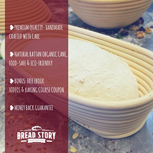 - ✔ BEST BREAD BAKING KIT AVAILABLE - Perfect for bread baking lovers, BREAD STORY’S OVAL PROOFING BASKET SET is for professional and amateur bakers – Works for Proofing, Banneton, or Brotform baking techniques – The bread set includes a large oval bowl with a removable cloth liner, ebook on baking sourdough bread, baking class discount, instructions, and future coupon to use - Dimensions are ten inches long, six inches wide, and almost four inches tall;