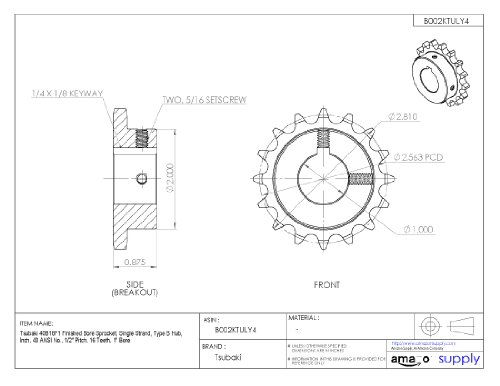 Tsubaki 40B16F-1 Finished Bore Sprocket, Single Strand, Inch, #20 ANSI No., 1/2" Pitch, 16 Teeth, 1" Bore