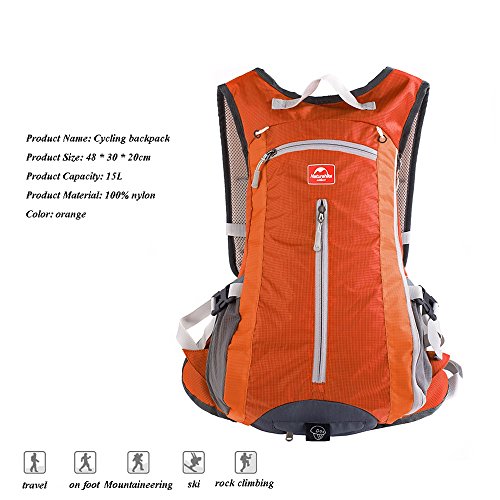 Product Series: Cycling backpack Decorate your home and decorate your life! Color: Black, Blue, Orange, Cyan, Rose red Material: Nylon Size: 48 * 30 * 20cm Strap type: adjustable Weight: 500g Capacity: 15L Applicable gender: Unisex Applicable scene: General camping / hiking Bear the system structure: soft package Note: All sizes are manual measurements, allowing small errors; the camera's pictures may differ slightly from the actual product, but not too much, depending on the light source. Thank you for understanding! SERVICE: Thank you for your trust and support! Excellent service, 100% guarantee you satisfied. If you have any questions about this product, please contact me by e-mail. Reminder: Please comment before contacting us. 0 |