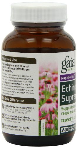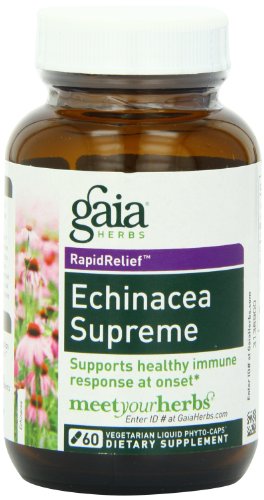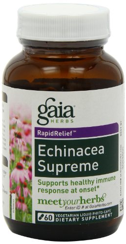 Studio : Gaia Herbs Publisher : Gaia Herbs Binding : Health and Beauty Product Description Gaia Herbs Rapid Relief Echinacea Supreme supports immune response at onset. Echinacea has been used successfully for hundreds of years to support immune health. Gaia Herbs' Echinacea purpurea is grown on Gaia's own certified organic farm. Concentrated for a fast-acting response, Echinacea Supreme contains the full spectrum of Echinacea phytochemicals- including alkyamides, the constituents most effective at initiating an immune response. Echinacea is a wildflower native to North America. While echinacea continues to grow and is harvested from the wild, the majority used for herbal supplements comes from cultivated plants. The root and/or the above-ground part of the plant during the flowering growth phase are used in herbal medicine. Conditions that come rapidly can go rapidly, when you give your body the right support. Gaia Herbs' RapidRelief products deliver results fast so you can get back to health and well being. 0