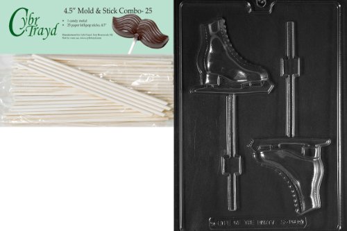 Cybrtrayd 45St25-S108 Ice Skate Lolly Sports Chocolate Candy Mold with 25 Cybrtrayd 4.5-Inch Lollipop Sticks
