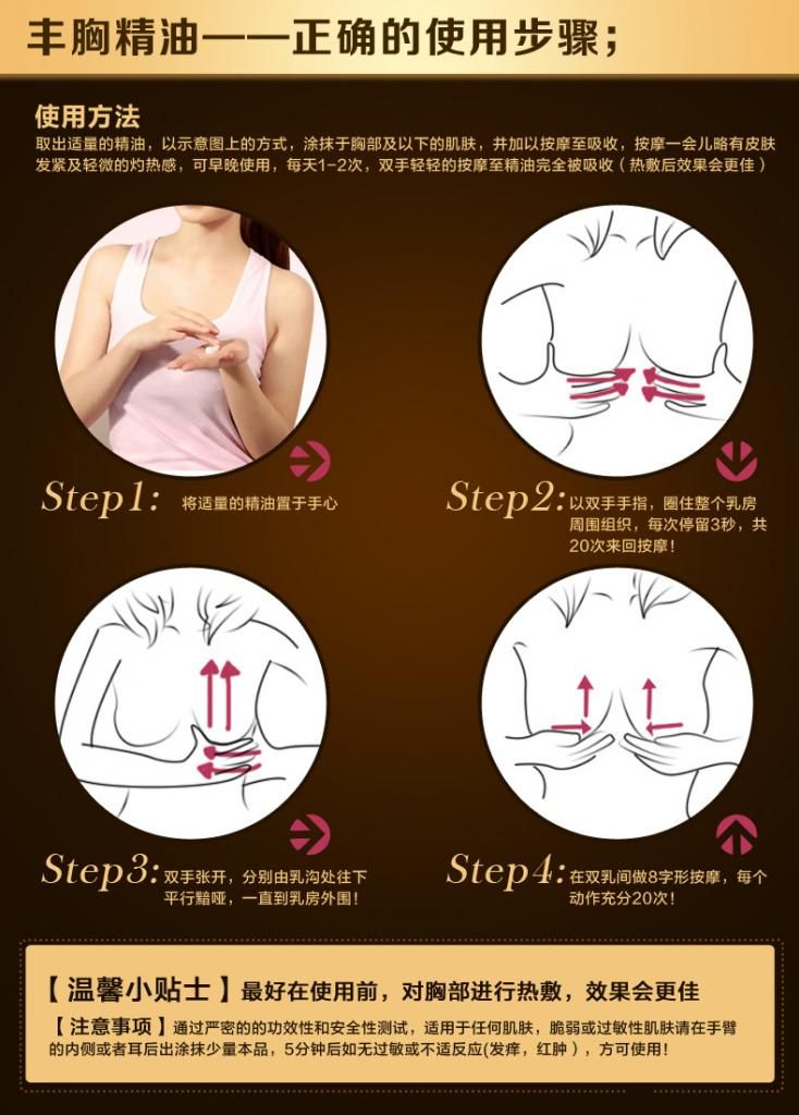 *For better effects, use a warm towel to mask your bust before applying and massaging.