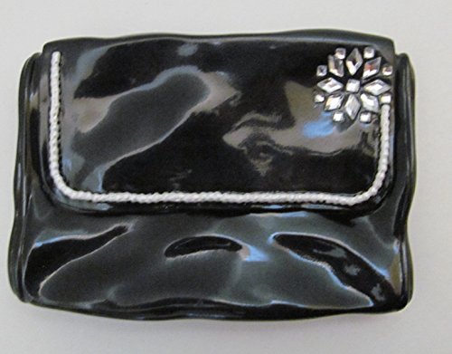 Designer CHANTILLY Fashion Bath Soap Dish Black Purse w pearls & diamonds