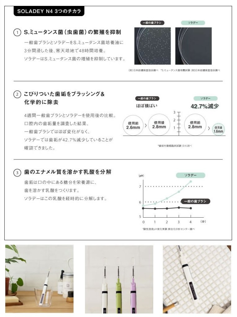 We realized high plaque removal power only with water.