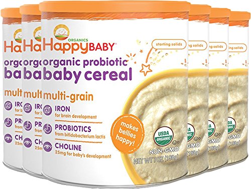 -. Title : Happy Baby Organic Baby Cereals with DHA + Pre & Probiotics, 7 Ounce Canisters (Pack of 6)
