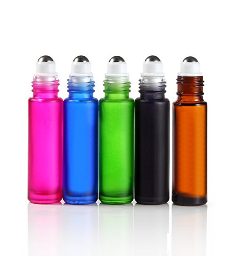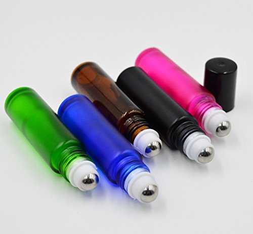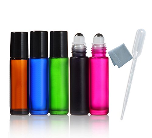 Elfenstall- 5pcs 10ml (1/3oz) Roll on Thick Glass Bottle Colorful Stainless Steel Roller Ball Essential Oils Perfume Bottle