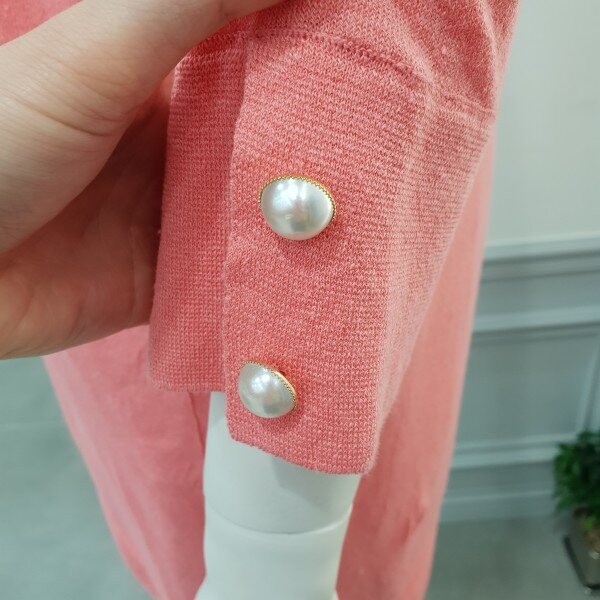얇고 가벼운원단소매 진주장식 포인트 롱가디건♡
