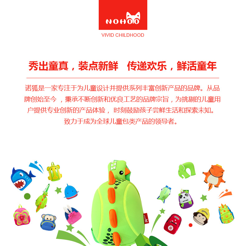 u0026nbsp;诺狐采用独特的Neoprene潜水料,有别于一般材质,潜水料具有良好的柔软性与弹性,防水防潮,质地轻盈等特点,有适用于专业潜水衣及各种运动领域,其立体塑形极具个性的特性更风靡时尚圈。诺狐童包独特的设计与良好的材质有别于一般的儿童包,立体结构剪裁,鲜艳大胆的配色,打材料的特性发挥到淋漓尽致,为我们的用户提供缤纷、舒适、健康的产品体验。