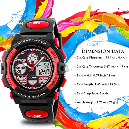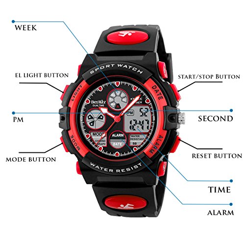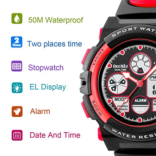 BesWLZ Boys Watches Multifunction Dual Time Digital Watches Alarm Sports Waterproof Kids Watches
