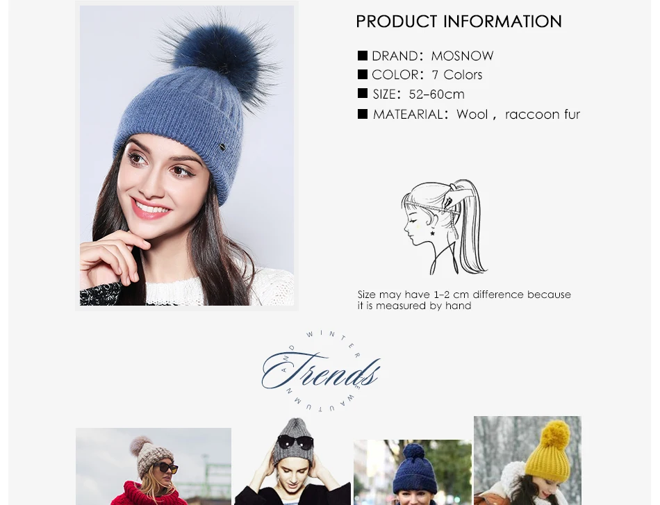 women's winter hats circumference: 52-60 cm