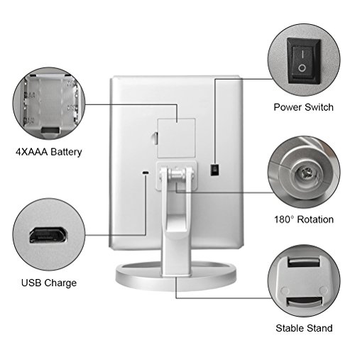 - Double Power Supply:This Led cosmetic mirror can either operated by 4 pcs AAA batteries (not included) or USB cable (usb wire included, but plug not included),very convenient to be used and carried