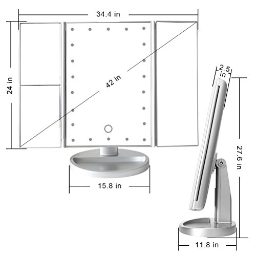 - 3X/2X/1X Magnification and Tri-fold Design:3 panels make up mirrors with magnification used together for perfect makeup,it not only provided with wide angle viewing, but also make you can see clearly your facial features,great for drawing eyebrows and applying lipstic