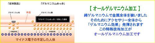 Material: accessories alloy "Kihei 8 surface cut" design germanium: 99.99% - plating (plating) + gold-plated length: 46cm, width: 5mm, Weight: about 23g, bracket: break-action [quality guarantee] with a temperature of 32 ℃ becomes equal to or larger than characteristic germanium which negative electrons are emitted. That that negative electrons acting on the human body, stiff neck and established a disturbance of the biological current, it is known that that will also enhance "natural healing force human body is inherent with relieve symptoms such as knee pain. The pure germanium is subjected to special technology plating to the entire necklace, necklace to demonstrate the superior to all that touching the skin "germanium effect". Conventional germanium accessories is that the only part that was set the germanium part was exerts its effect, this necklace is to receive a germanium effect from any part touching the skin it features. Japanese majority of adults are said to be suffering in the stiff neck. All germanium necklace is the accessory of absolutely recommended for such people. Design also, fashionable eighth surface cut. Sharp in the diamond tool has become a beautiful finish that is beveled cut.
