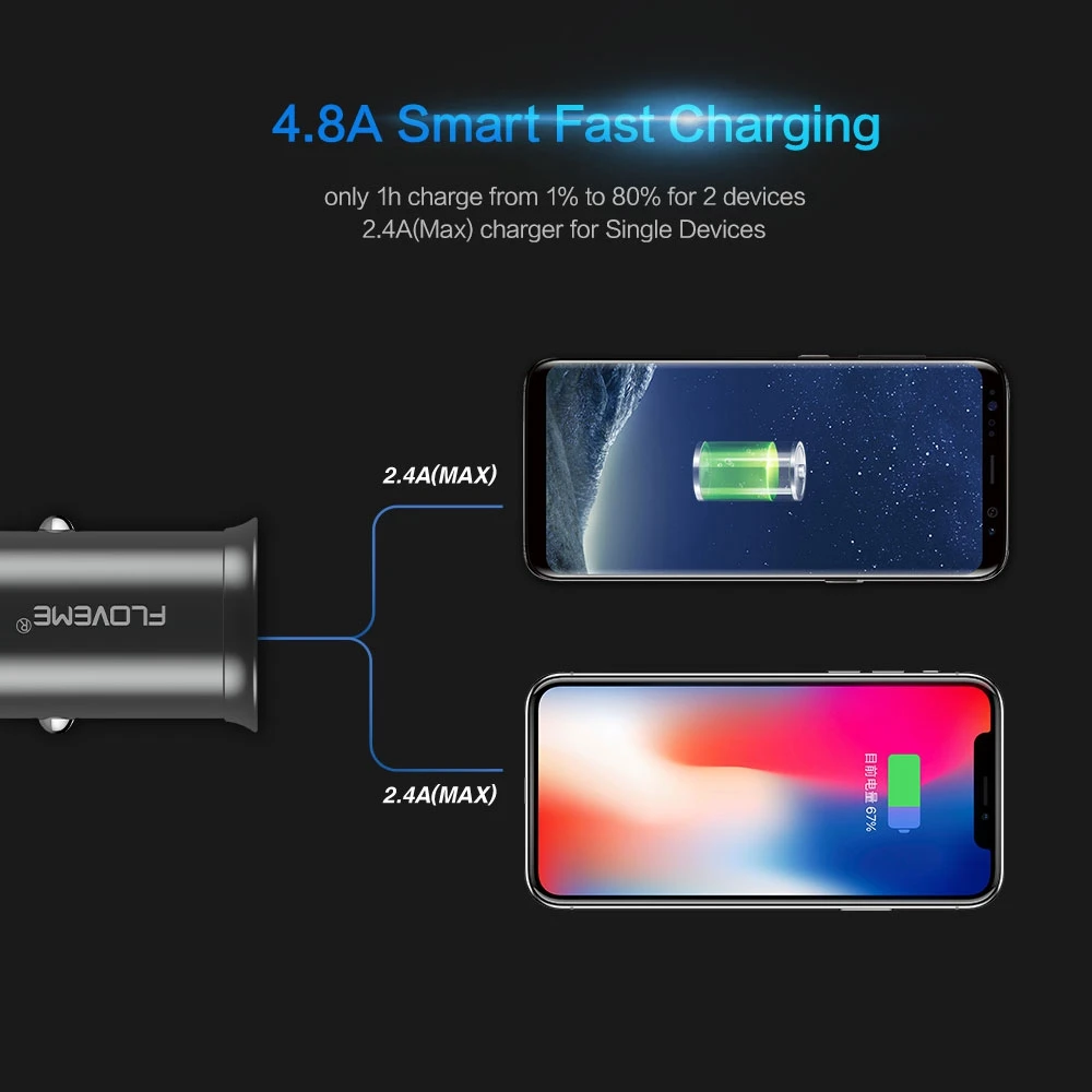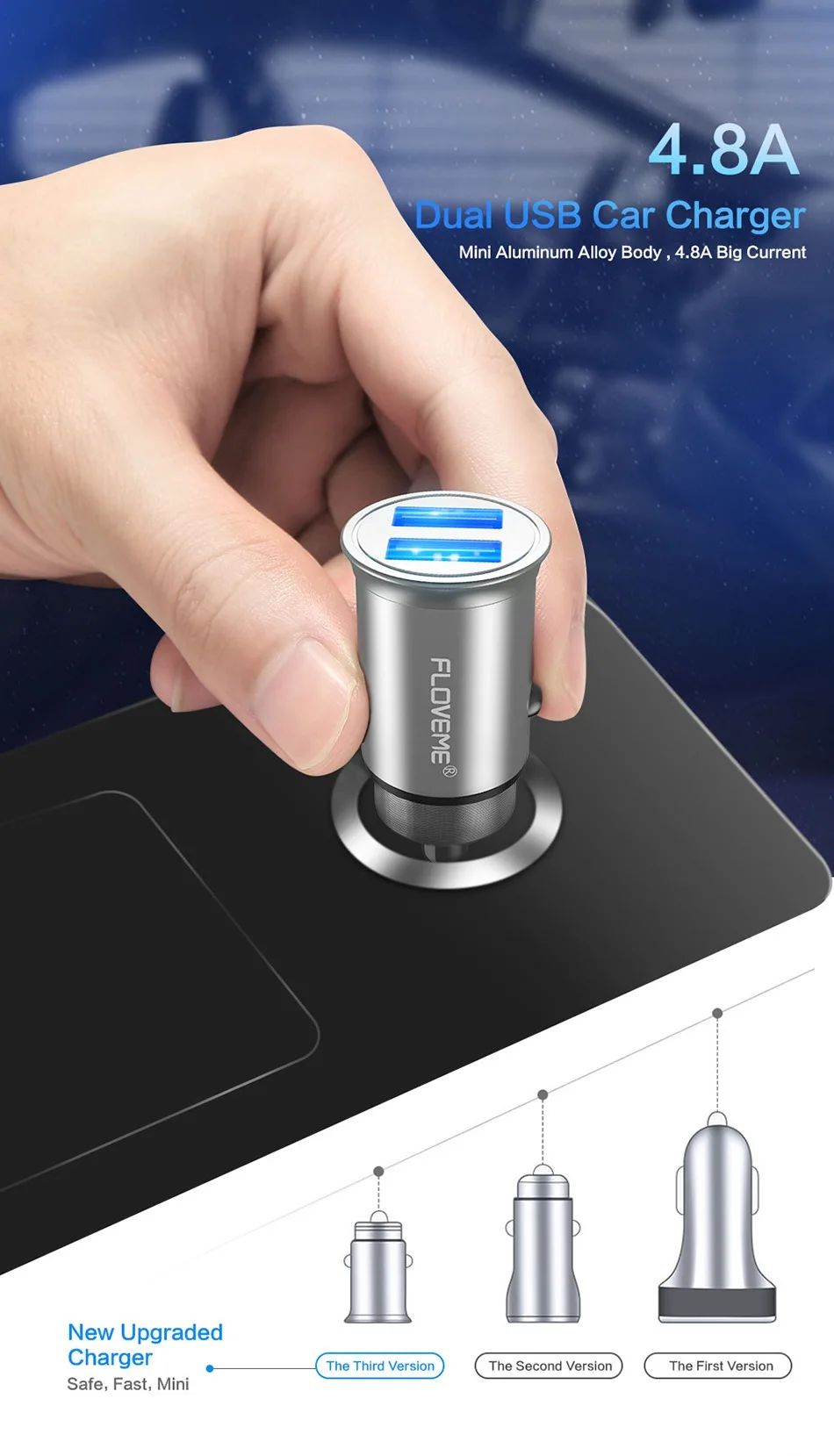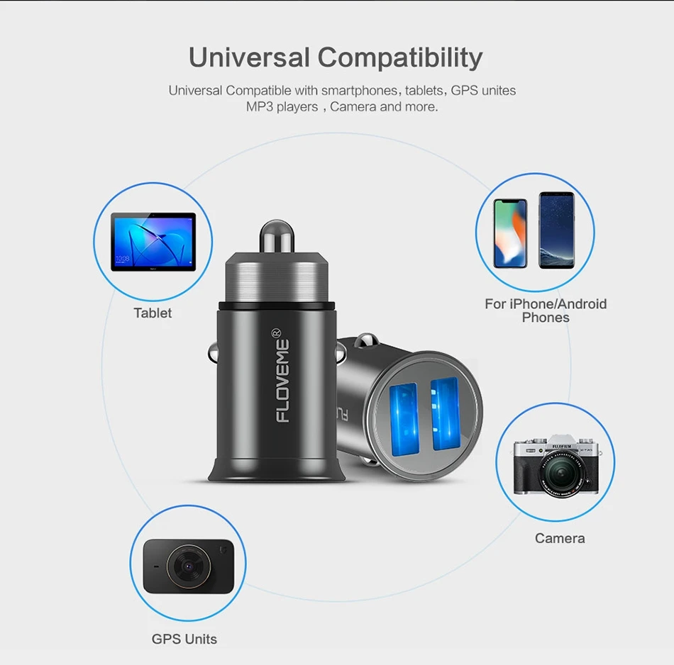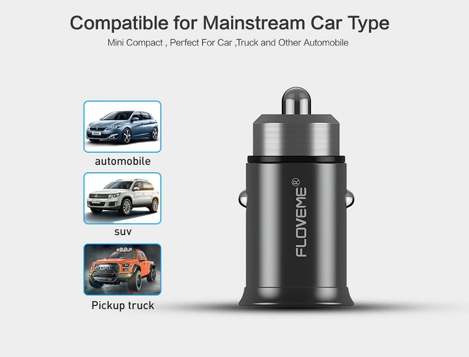 Name:FLOVEME Aluminum Dual USB Car Charger