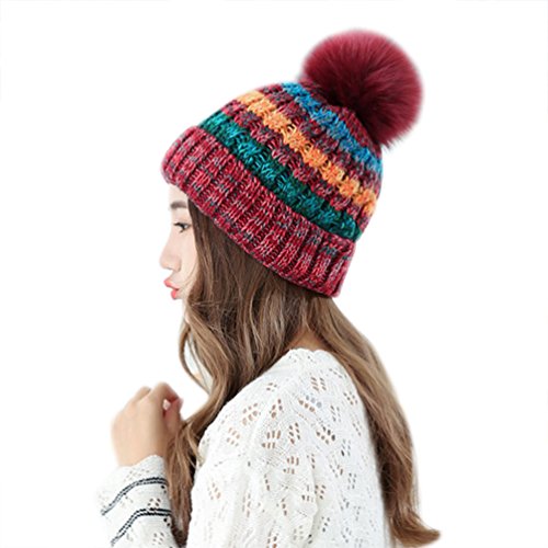 Binding : Apparel Product Description Fashion Winter Women Hat Pom Pom Warm Fluffy Ball Knitted Skull Beanies Cap Stay warm this fall and winter with this ultra-thick dual layered knit beanie. Larger design than most to create a slouched look at the top. Only the softest highest quality materials were used to knit this winter accessory. Breathable and warm design keeps the skin dry. Materials: Acrylic