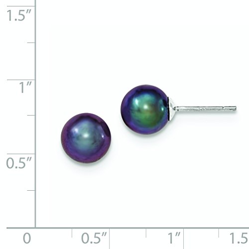 ICECARATS DESIGNER JEWELRY 925 STERLING SILVER 9MM BLACK FRESHWATER CULTURED ROUND PEARL STUD BALL BUTTON STUD EARRINGS