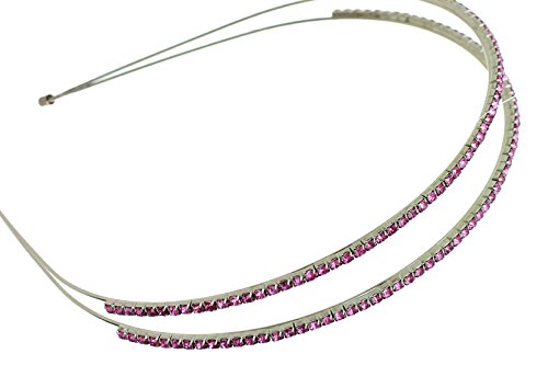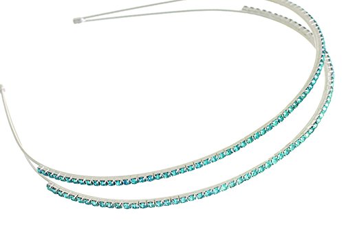 This simple yet elegant headband features two rows of sparkling rhinestone crystals available in White/Clear, Rose/Pink, Aqua/Blue, and Rainbow/Iridescent. This resilient metal headband can be flexed inward or outward to adjust for the perfect fit. An easy addition to dress up any hairstyle for any occasion- weddings, prom, holiday parties, recitals, cruises, etc. Versatile enough to add sparkle and class to a dressy outfit, or can be worn everyday to spruce up casual attire. Carefully hand-packed in Dallas, Texas in a premium white gift box with swirl finish and elastic gold gift bow. Lead free construction.Feature