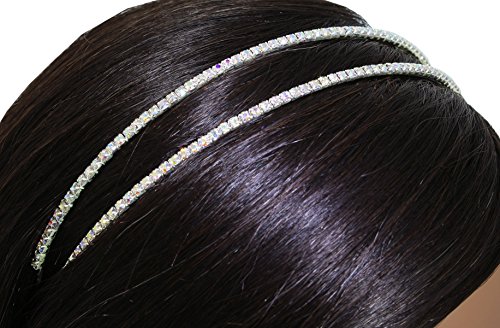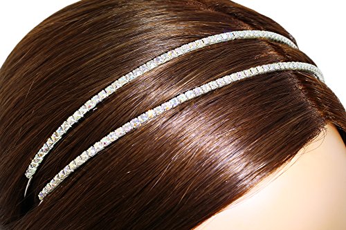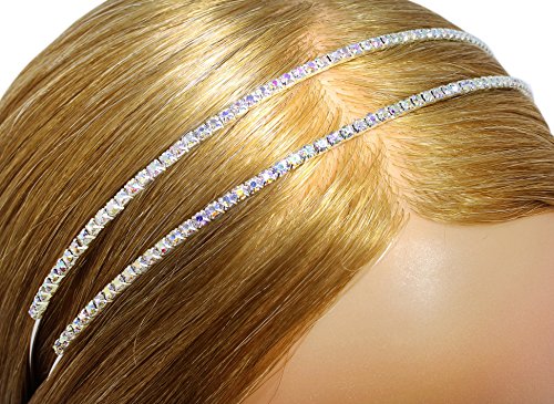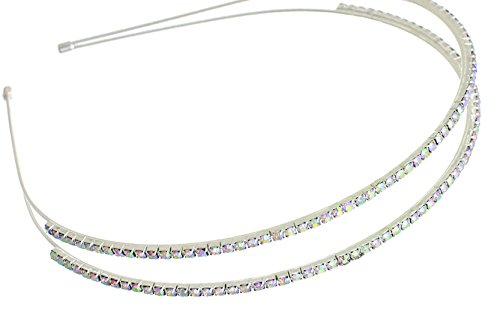 Features two elegant rows of sparkling iridescent rhinestone crystals for a beautiful double headband look
