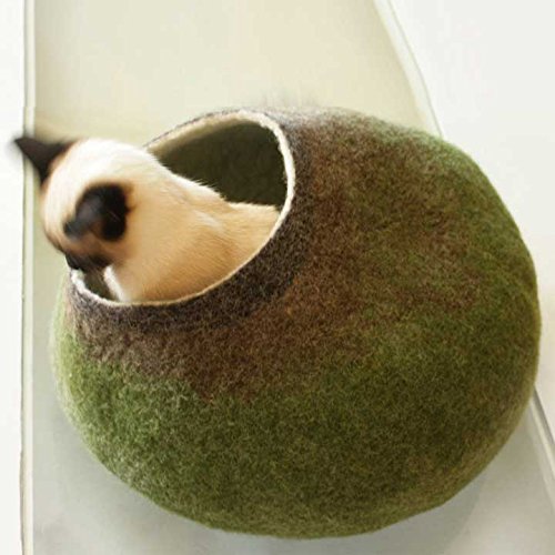 -. Title : 100% Felted Wool Green Cat Bed/Cave/Igloo/House/Home Pet Gear