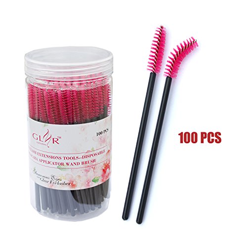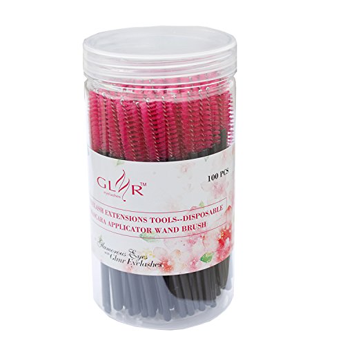 GLMR 100PCS False Eyelash Extension Disposable Eyelash Mascara Applicator Wand Brush (Pink)