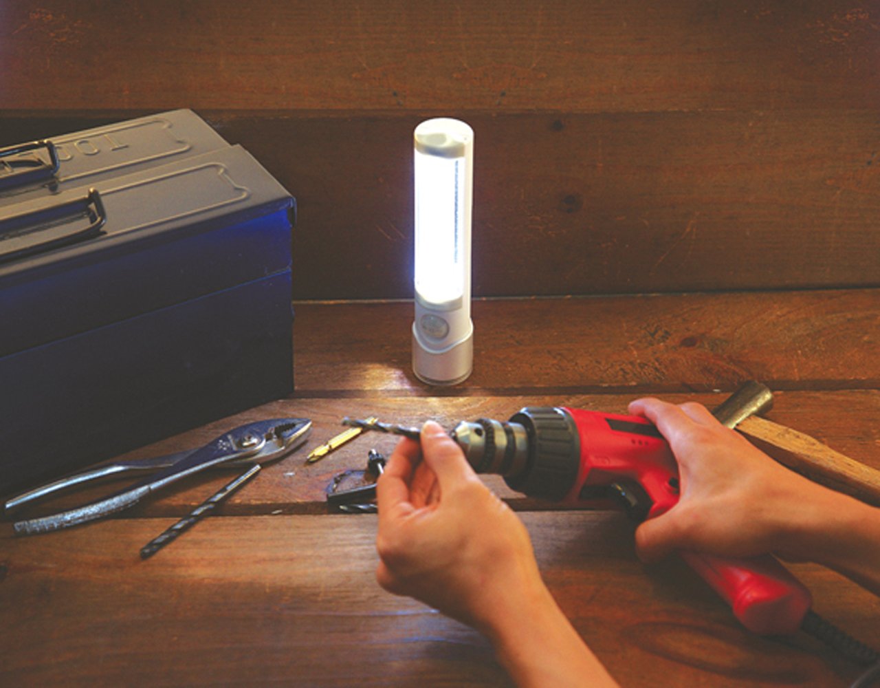 Convenient tool with a flashlight, useful as one sensor light, flashlight, desktop light.