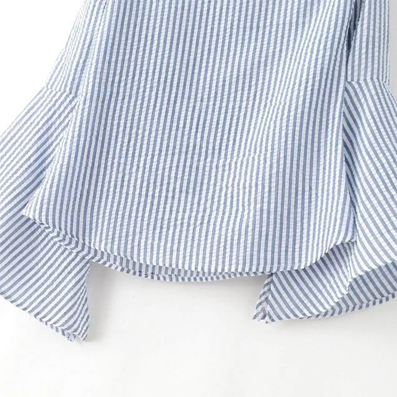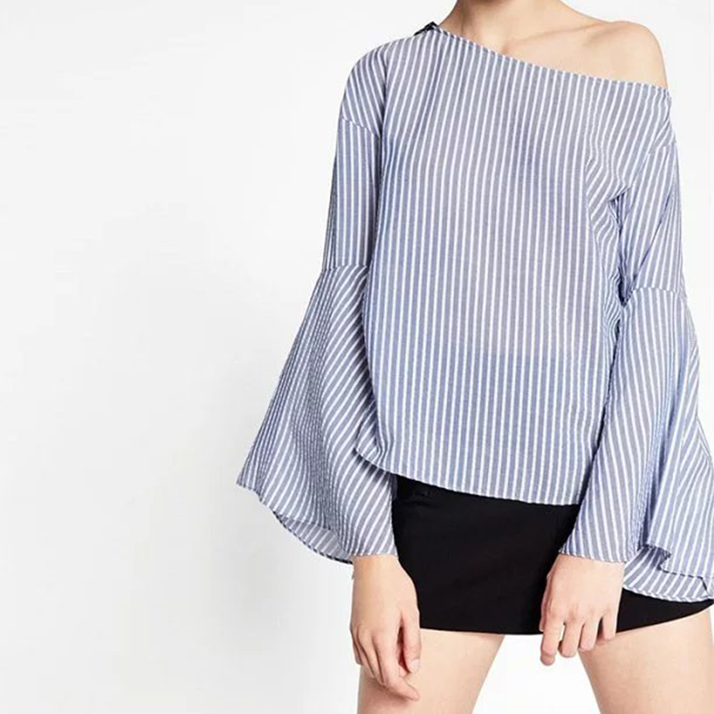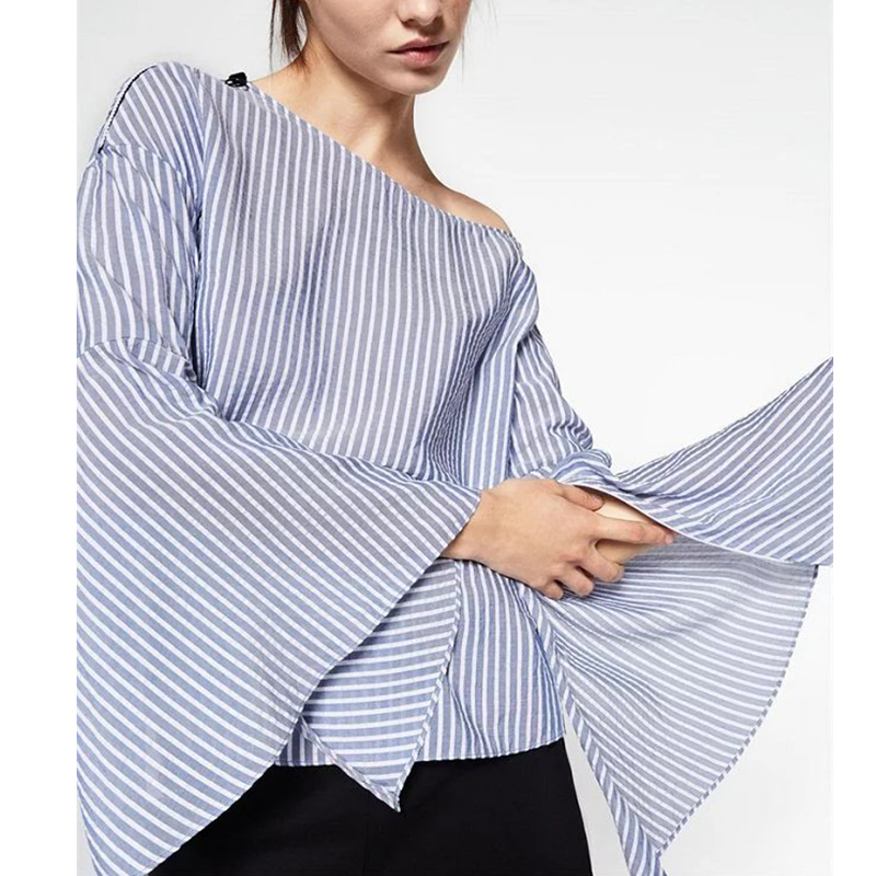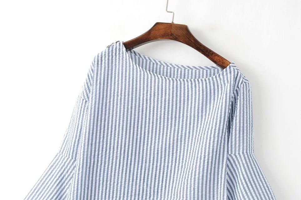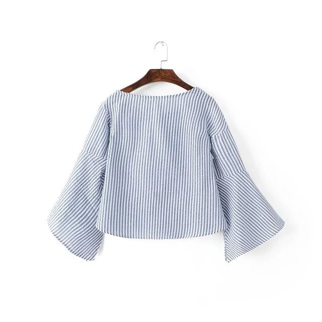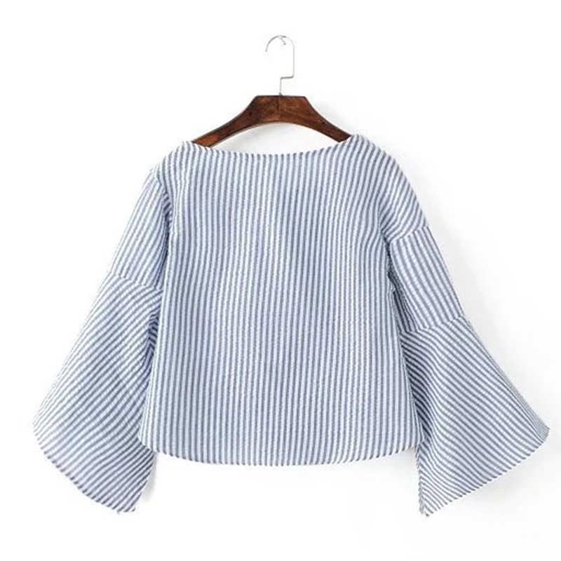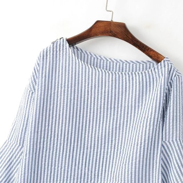 100% New Fashion Striped Flare Sleeve Shirt SIze : S M L XL Size S Bust 84 Shoulder 47 Length 52