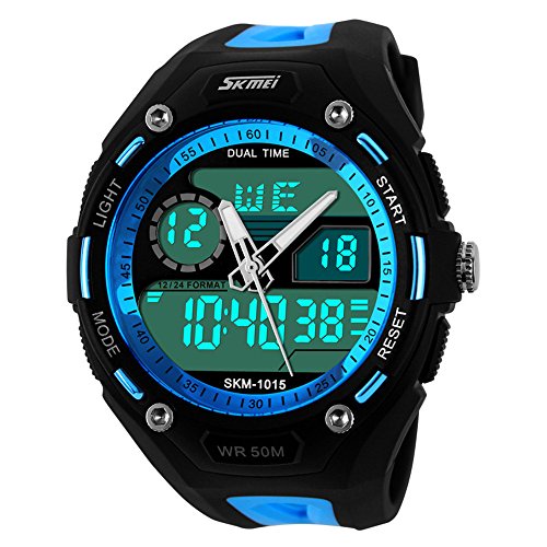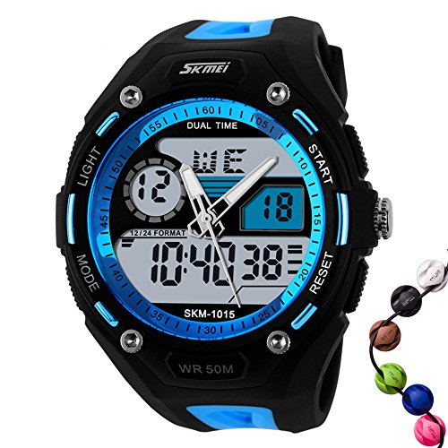 TTLIFE 맨즈 손목시계 아날로그 디지털 멀티 기능 LED쿼츠 시계 방수 전자 스포츠 손목시계 자명종 캘린더 블루
