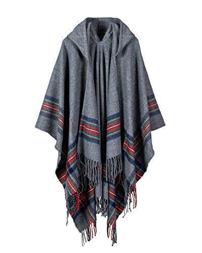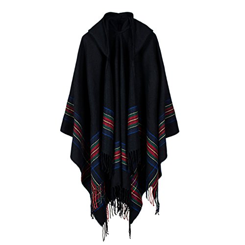 (Janice Davis)/Accessories/Scarves/DIRECT FROM USA/Janice Davis Women Knitted Poncho Cape Hooded Stripe Oversized Cardigan Blanket Long Shawl Scar...