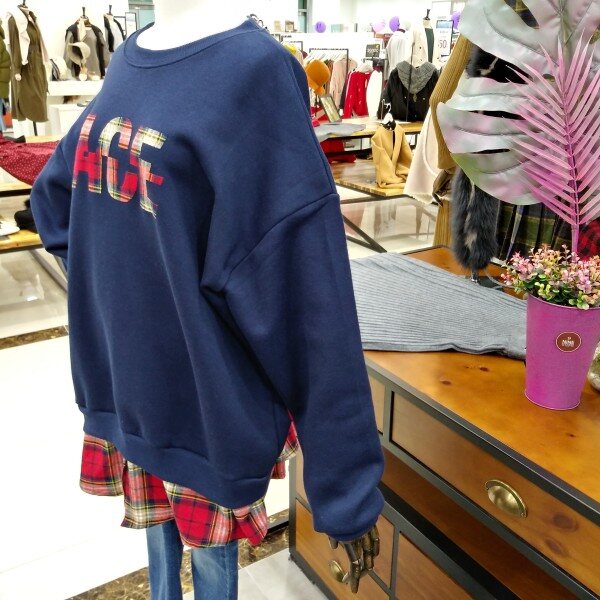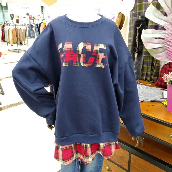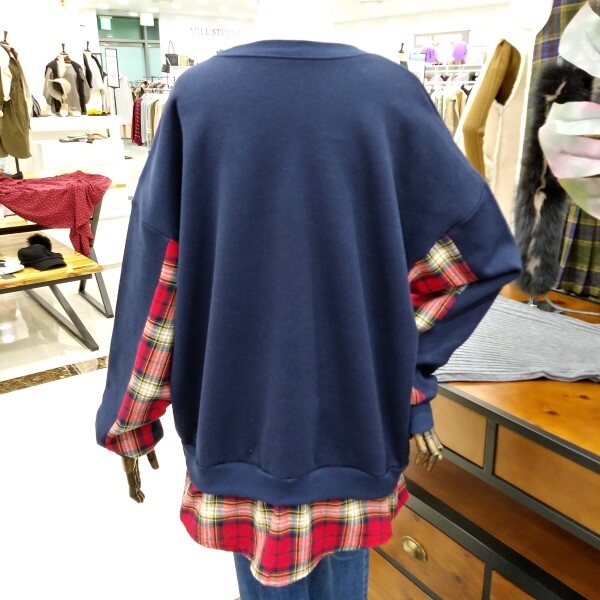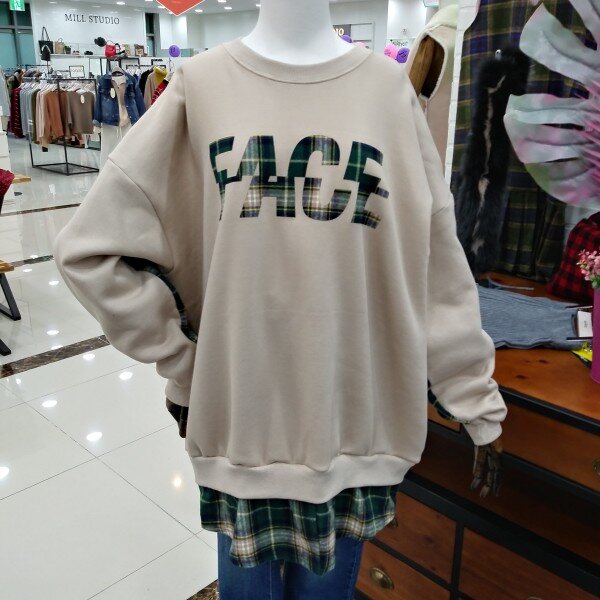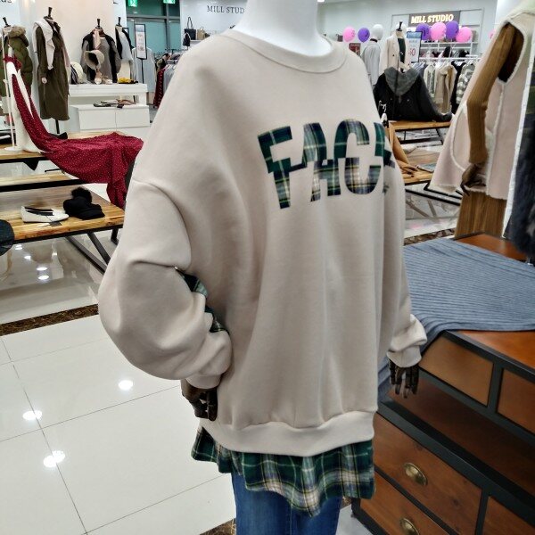 소매라인과 밑단에 체크포인트로 레이어드된 박시핏 맨투맨티로 힙선내려오는 기장감에 캐주얼티로 이너하시기좋은 티이에요