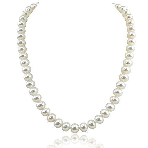 14K White Gold 8.5-9.5 mm High Quality Ultra Luster White Freshwater Cultured Pearl necklace 18 Inches (18, white-gold)