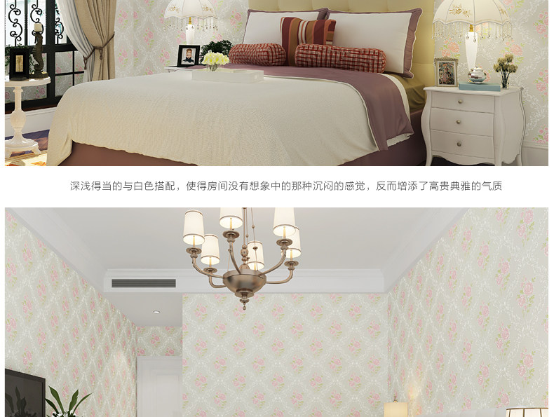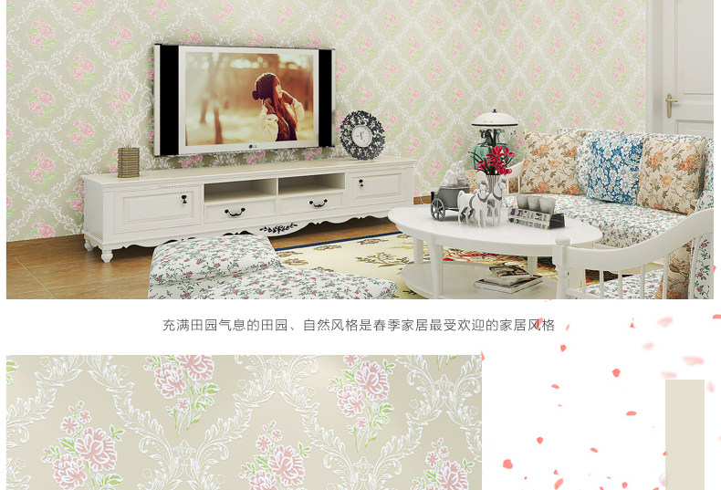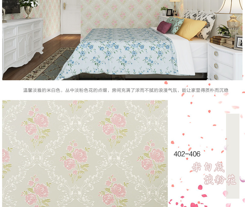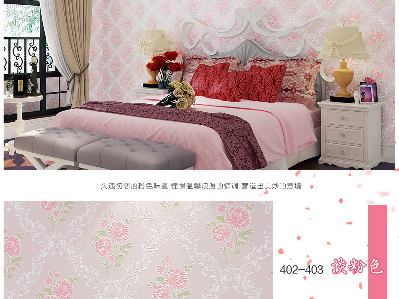 御纸世家 欧式田园3D无纺布壁纸 卧室温馨浪漫碎花简约婚房墙纸