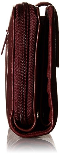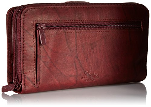 Authentic crunch leather, rich floral emboss heiress ensemble clutch features a front snap closure, full zip-around double compartment with inside zipper pocket and 2 credit card slots, checkbook cover, 6 additional credit card slots, 2 storage pockets, i.e. Window and pen slot.
