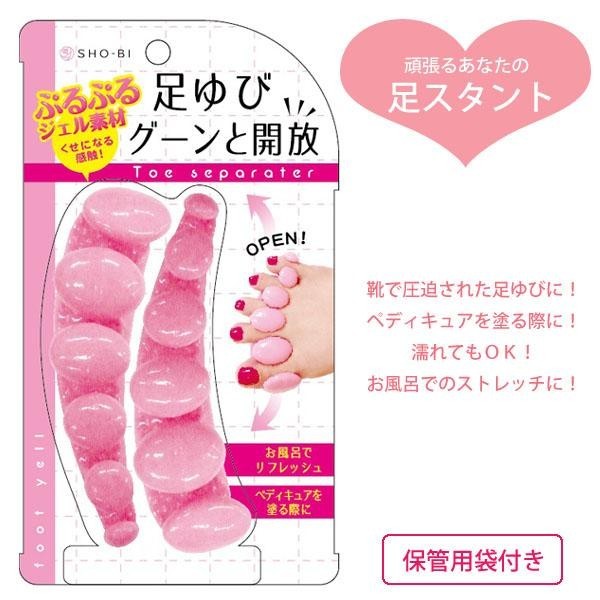| ぷるぷるジェル素材が気持ちいい、足を広げるセパレーターです。靴で圧迫された足ゆびをグーンと広げて伸ばしてくれます。濡れても大丈夫な素材なので、お風呂でのストレッチや、ペディキュアを塗る際にもおすすめです。 |