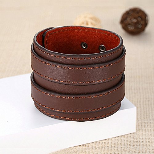 ♣ Comfortable and Fashionable Design, Wide band leather bracelet helps you to highlight your masculine charm