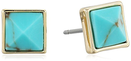 Gold Tone with Turquoise Square Stud Earrings