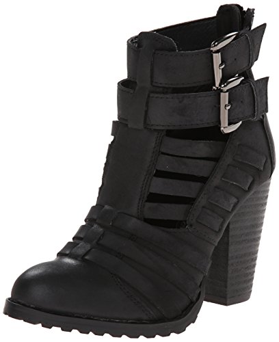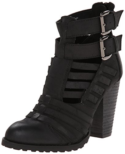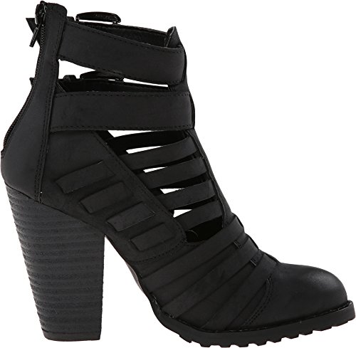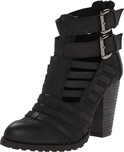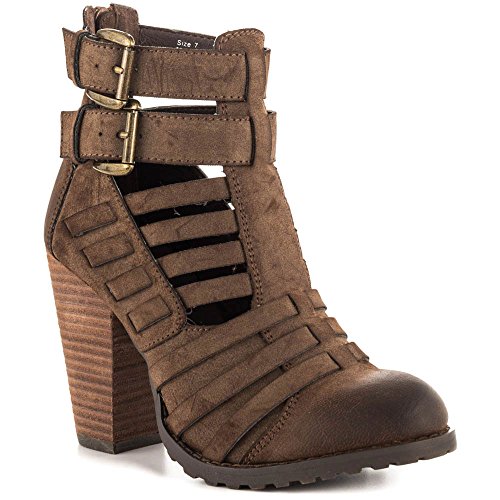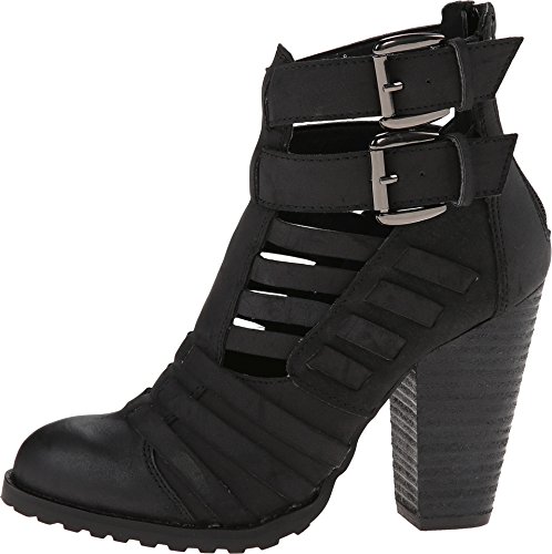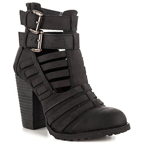 Strapped faux leather upper. Man-made lining. Lightly cushioned man-made footbed. Stacked heel. Textured man-made sole. Imported.