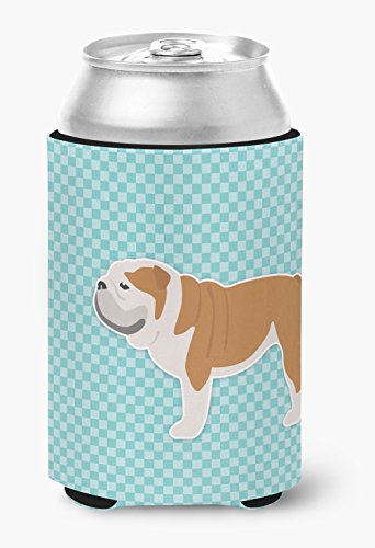 Caroline's Treasures English Bulldog Checkerboard Blue Can or Bottle Hugger BB3762CC, Can Hugger, Multicolor