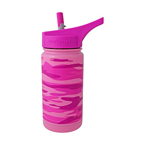 -. Title : EcoVessel Kid's Stainless Steel Water Bottle with Flip Straw Top, 13 ounces, Pink Camouflage