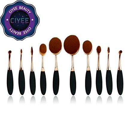 -. Feature : Ciyee---Fashion gold oval makeup brush set / 10PCS Makeup brush set with super soft hair / Give you a flawless foundation application every single time. / From highlighting to contouring, this 10 piece set gives you so many options for doing your makeup. The brushes have a round shape design that's perfect for blending foundation, blush, or powder to your face or cheeks. / Universal brushes set that they cover all needs of application,such as foundations, contouring the forehead and cheekbones, concealer, eyeshadow, sculpting eyebrows, lips