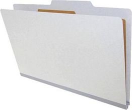 -. Feature : This classification file folder has one divider and four filing sections. / It has a 2/5 Cut right-of-center top tab for drawer filing. / It is legal size to hold 8-1/2" x 14" documents. / This folder is made of 25 pt light grey pressboard stock and has one 17 pt kraft dividers with duo fasteners. / BUY 5, SAVE 10%